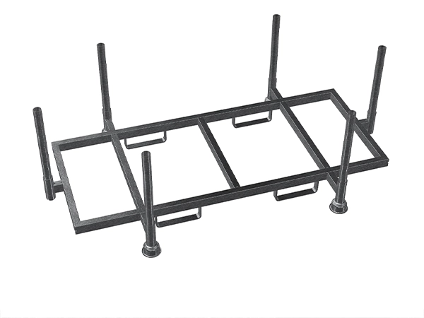 Pallestativ for matter muliggjør sikker lagring og transport av grunnbeskyttelsesmatter (2,4 x 1,2 m). Maks belastning 1,5 tonn.
