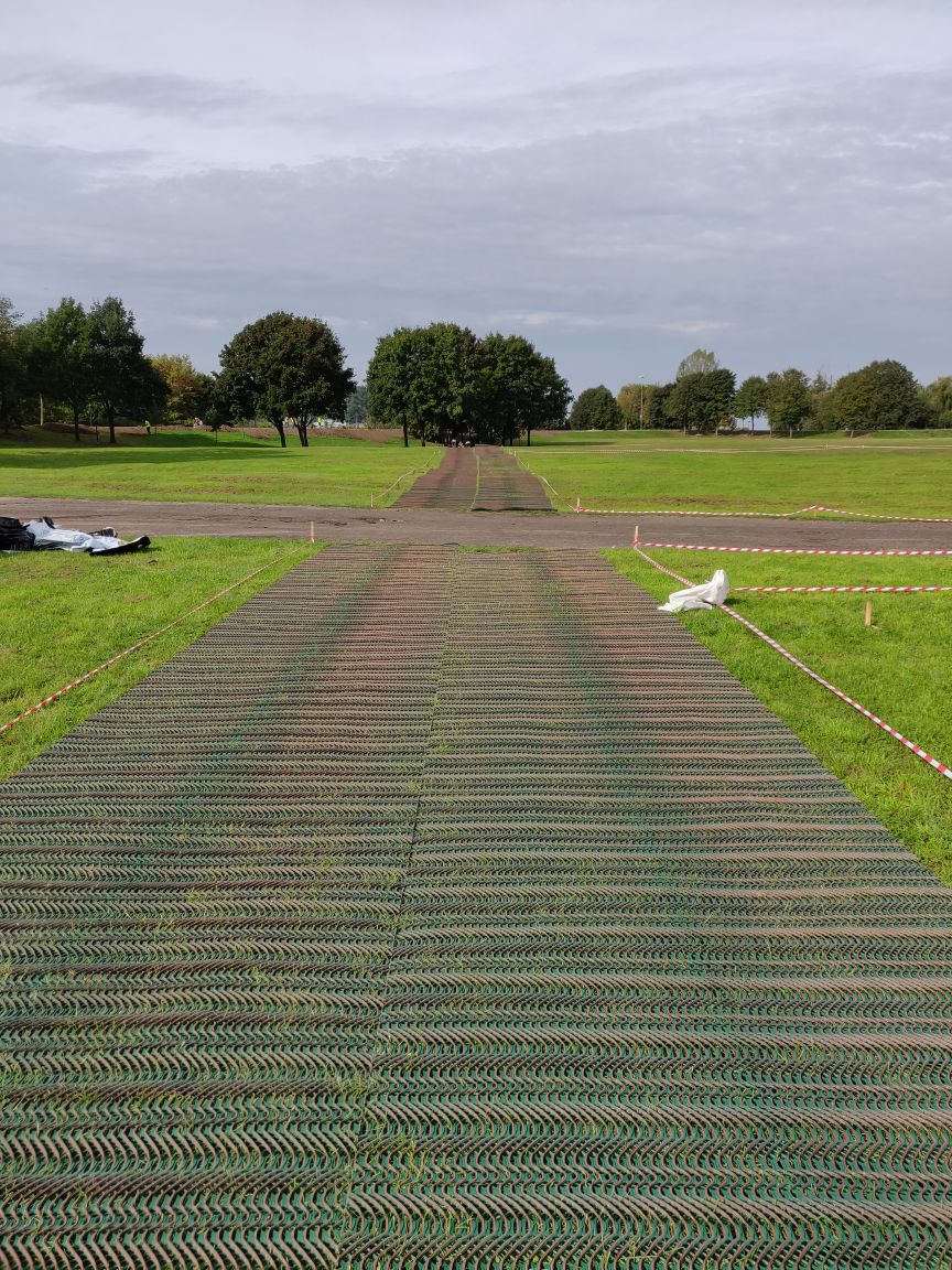 PermaTrax® Gressforsterkning er laget av 100 % resirkulert høy-densitet polyetylen (HDPE) og etylen-vinylacetat (EVA) og er lasttestet til en maksimal kapasitet på 7 tonn*.