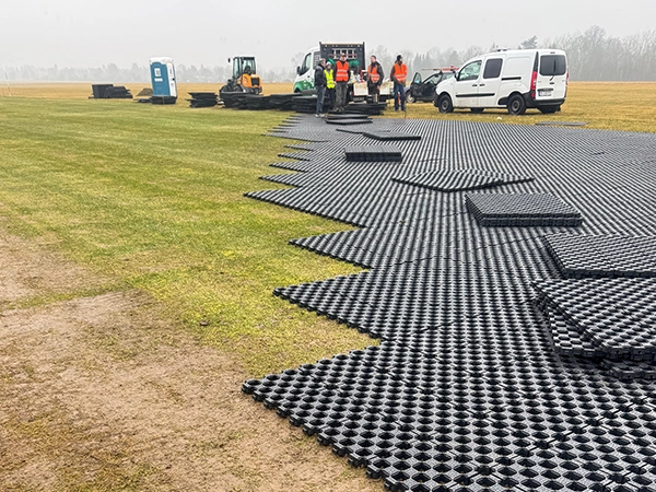 Forsterker myke underlag: Hindrer gjørme, spor og nedtråkking.