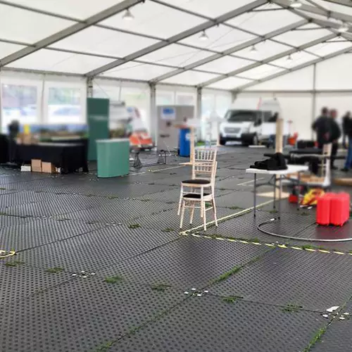TempoTrax® Economy-matter er laget av 100 % resirkulert polyetylen med lav tetthet (LDPE) og er lasttestet for å frakte fotgjengere eller lette kjøretøy* på vanlig fast grunn som en gjennomsnittlig gresskledd hage om våren/sommeren. Tykkelse inkludert mønster: 10mm (9+1mm).