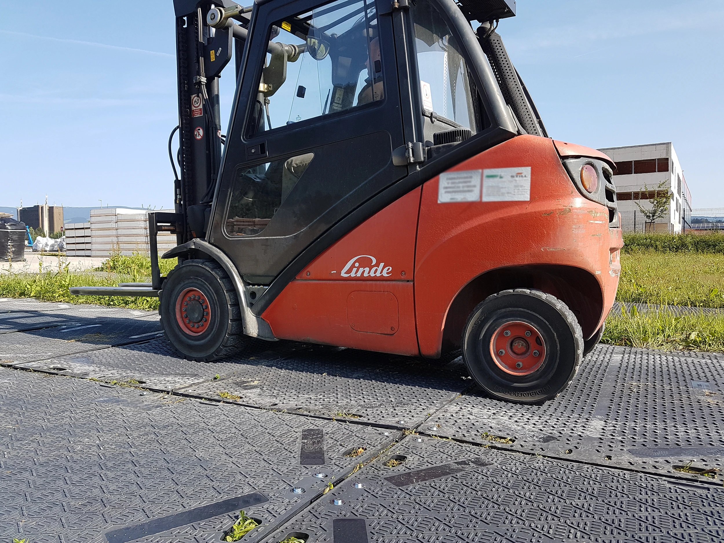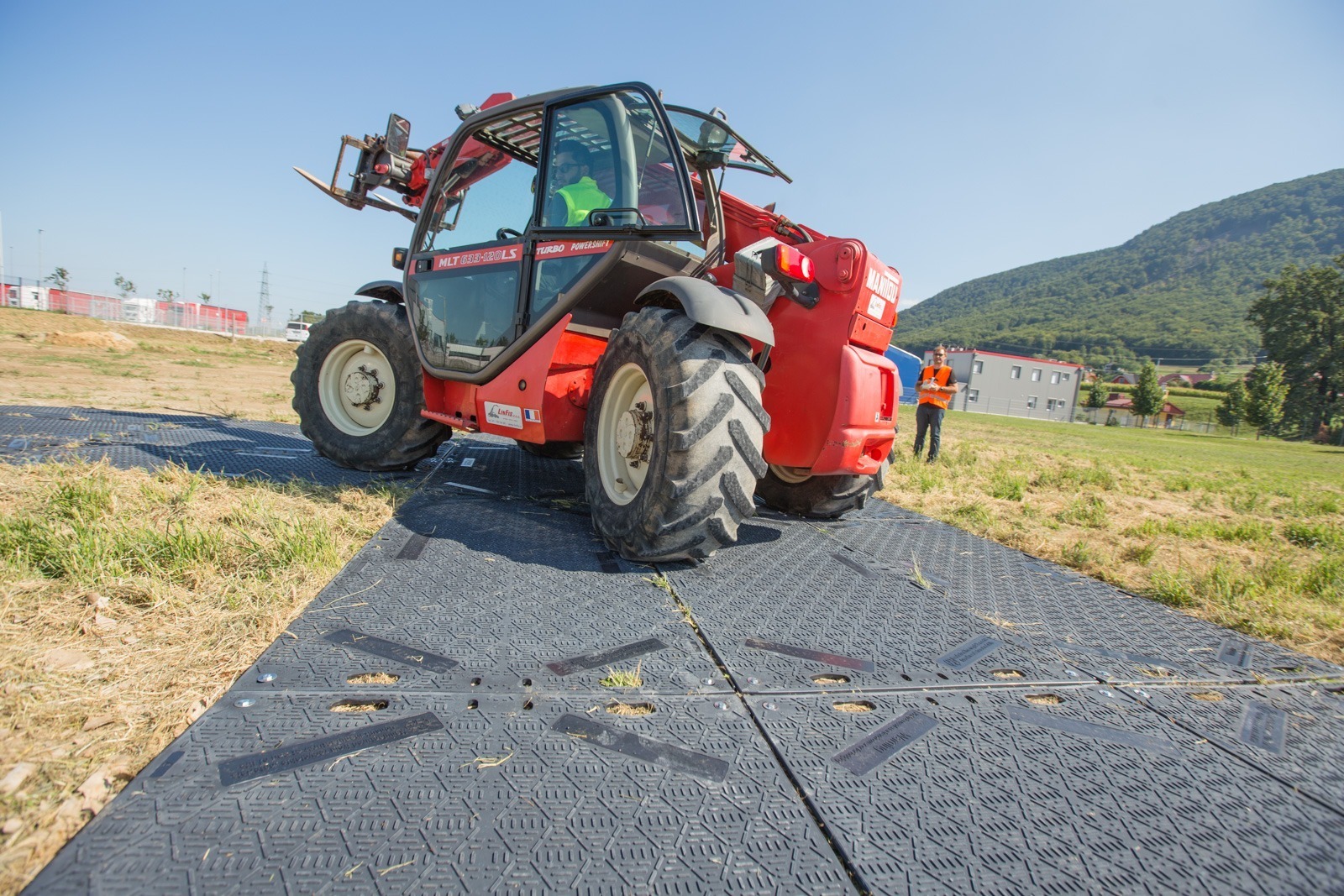 TempoTrax® Heavy Duty Ground Protection matte er laget av 100 % resirkulert polyetylen med høy tetthet (HDPE), og er lasttestet til en maksimal belastning på 80 tonn* på både flate og litt ujevne overflater.