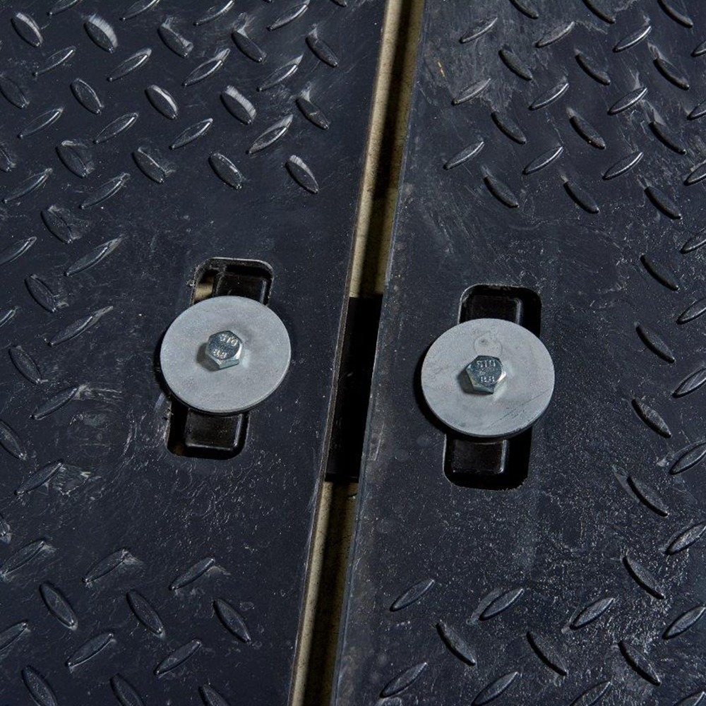 Med håndhull i hver ende og festehull i hvert hjørne, er mattene håndterbare og kan enkelt flyttes og monteres for hånd. Se vårt utvalg av tilkoblingsmuligheter. Glideflaten, med to forskjellige mønstrede gripeflater, er designet og testet for både kjøretøy og fotgjengere. Dens unike design kompenserer for lineær ekspansjon/krymping av matter under ekstreme temperaturendringer.